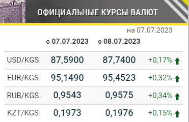 Национальный банк Кыргызстана обновил официальные курсы иностранной валюты к сому на 8 июля. Информация размещена на сайте регулятора.
