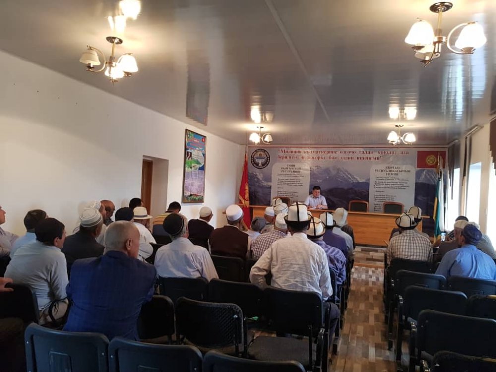 М.Чойбеков, который выразил благодарность приглашенным откликнувшемуся встретиться для рабочей встречи. «Мы должны взаимодействовать в рамках закона, со всеми имамами мечетей нашего района и главами местных айыл окмоту , чтобы достичь мира и благополучия в районе, чтобы жители нашего района с пониманием относились к работе милиции, а также к требованиям