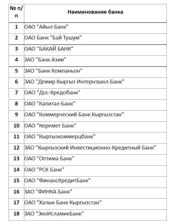 Список коммерческих банков, с которыми заключены договора по обслуживанию пенсионных и карт-счетов пенсионеров.