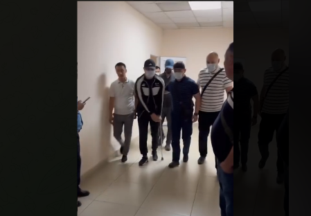 В соцсетях распространилось видео, на котором активиста Тилекмата Куренова (Кудайберген уулу) приводят в суд. На кадрах видно, что он хромает, передвигается с тростью и находится в медицинской маске. За кадром слышны голоса, предположительно, родственников или сторонников, обвиняющих силовиков в применении пыток.