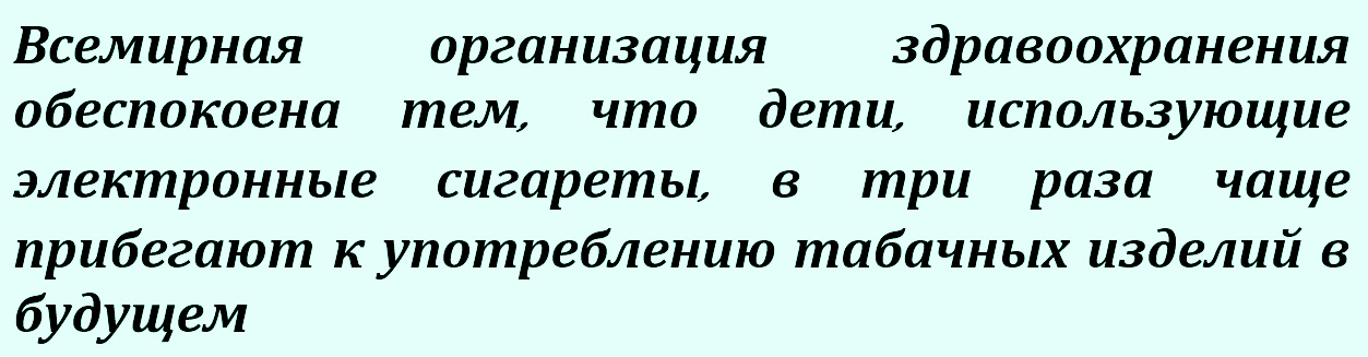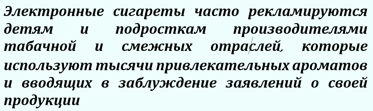 Эти гаджеты со всевозможными «крутыми» наворотами называются иногда «средствами доставки никотина в организм человека» в отличие от обычного курева, как будто в этом куреве нет никотина. Суть-то у них одна – вызвать у человека никотиновую зависимость, чтобы он всё больше хотел всё это покупать и употреблять, главное – никотин, но внешне всё выглядит, как будто табачные компании заботятся о здоровье человека.