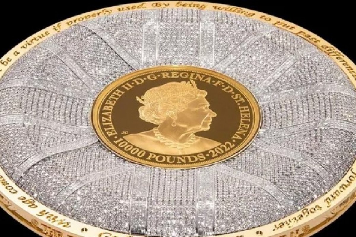 Гигантскую монету с семью тысячами бриллиантов создали в Великобритании в память о королеве Елизавете II, передает «МИР 24».
