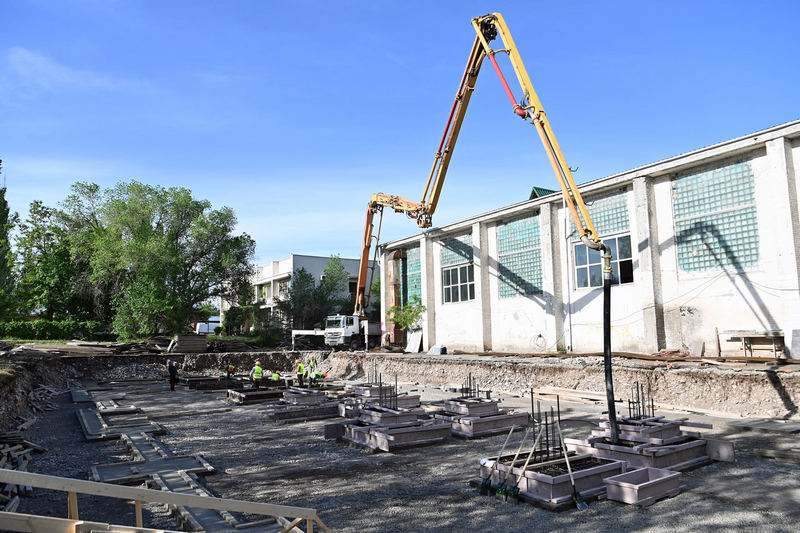 В настоящее время на объекте произведена разработка котлована под строительство здания спортивного зала на 100%.