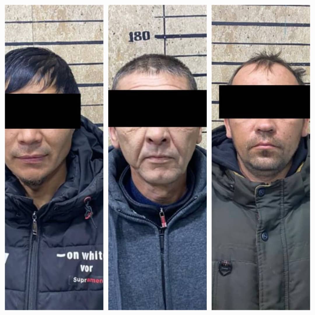 Оперативниками ГУВД г.Бишкек и УВД Ленинского района были установлены и задержаны подозреваемые К.С. 1971 года рождения, Ы.У. 1991 года рождения и И.В. 1986 года рождения, которые были доставлены в следственную службу.