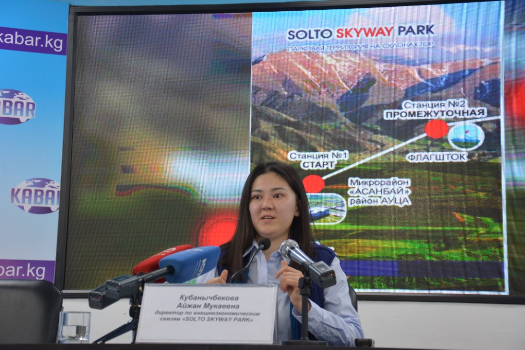 В Бишкеке 20 апреля начнется строительство уникального туристического объекта «Solto Skyway Park», отличительной чертой которого будет канатная дорога. Об этом сегодня на пресс-конференции сообщила директор по внешнеэкономическим связям компании «Solto Skyway Park» Айжан Кубанычбекова.