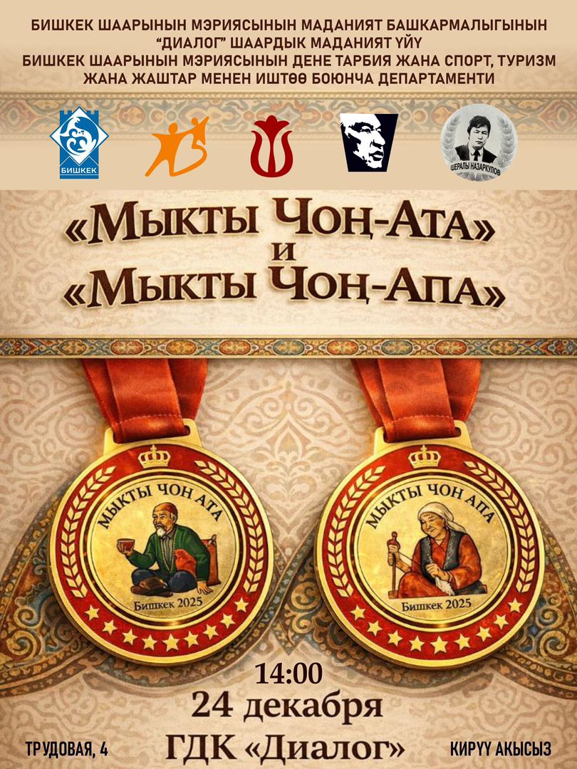 В городском Доме культуры «Диалог» города Бишкек состоялся конкурс «Мыкты чоң ата» и «Мыкты чоң апа», направленный на сохранение семейных ценностей и национальных традиций. Об этом сообщила пресс-служба столичной мэрии.