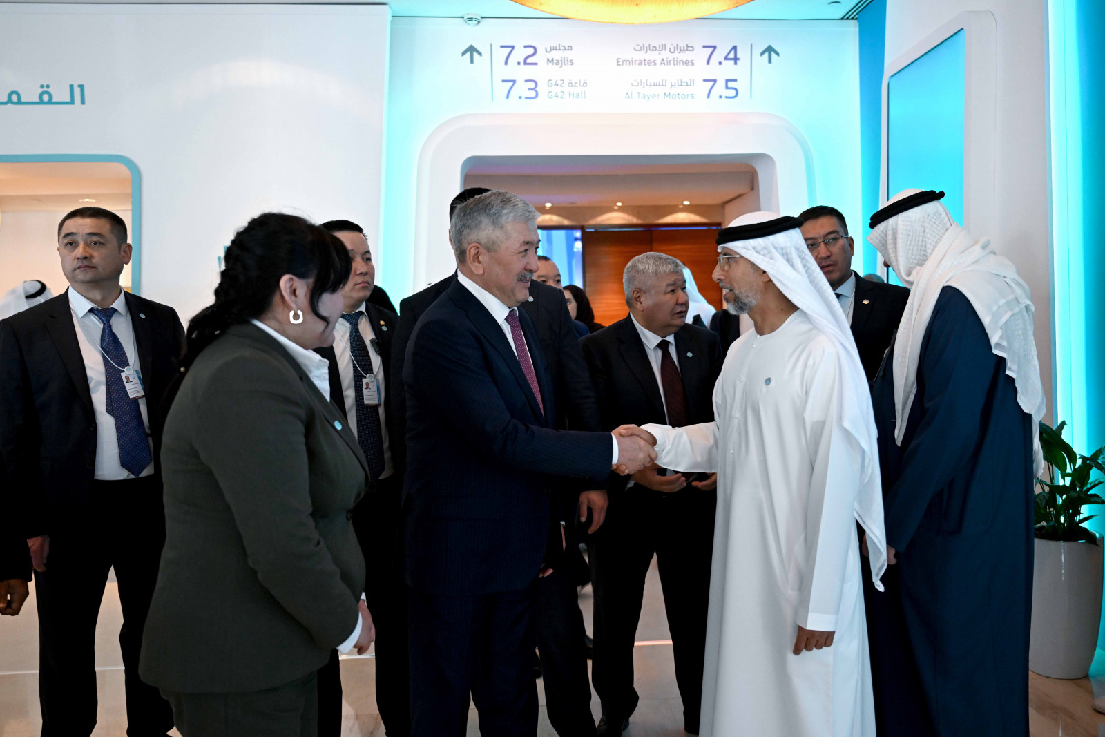 Председатель Кабинета Министров Кыргызской Республики-Руководитель Администрации Президента Адылбек Касымалиев на полях Всемирного правительственного саммита провел встречу с Министром энергетики ОАЭ Сухейлом Аль-Мазруи и исполнительным директором компании «Masdar» Мохаммедом Жамиль Аль-Рамахи.