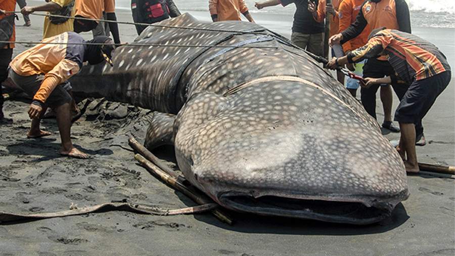 Рыбаки в Индии вытащили с уловом на берег Баласора девятиметровую китовую акулу весом около 5 т — для этого понадобилось почти 100 человек. Об этом 4 декабря сообщил индийский телеканал Odisha TV.