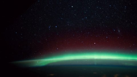 Сообщается, что два самых красочных явления верхних слоев атмосферы сошлись в небе на рассвете 16 марта этого года. В это время МКС пролетала над южной Аляской.