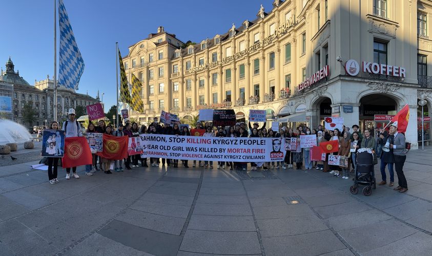 В Мюнхене (Германия) прошел митинг кыргызстанцев против военной агрессии Таджикистана. Об этом сообщают СМИ со ссылкой на участницу акции Бермет Абдрахманова.