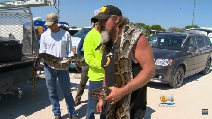 Дасти Крам принимает участие в государственной программе по уничтожению питонов в Южной Флориде. Охотнику за змеями платят около восьми долларов в час за его опасную работу. А за каждого пойманного питона мужчина получает премии, в зависимости от длины трофея. Местные специалисты подсчитали, что в ближайшее время количество этих змей во Флориде может достигнуть 300 тысяч особей. Эти млекопитающие терроризируют птиц, кроликов, енотов и даже крокодилов.
