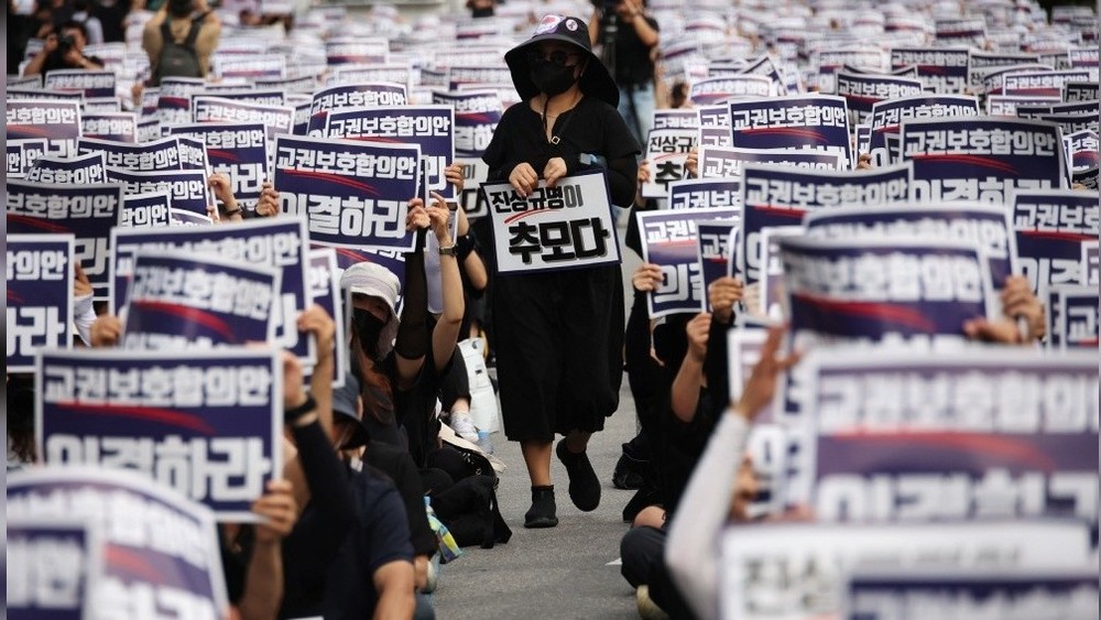 Учителя по всей стране уже девять недель проводят акции протеста из-за самоубийства 23-летней учительницы начальной школы Сеула. Ранее молодая девушка выражала беспокойство по поводу жалоб от чрезмерно авторитарных и даже жестоких родителей.