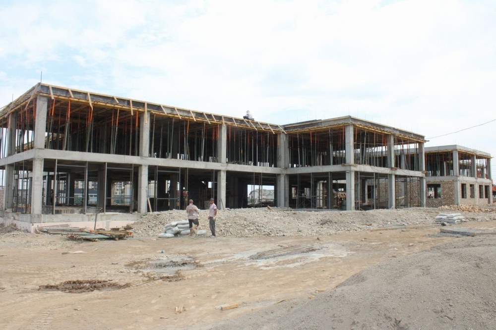 На данный момент завершен каркас 1 этажа. Завершена подготовка колонн 2 этажа. Начата кирпичная кладка внутренних и внешних стен 1 этажа.Подрядной организацией выступает ОсОО «Эталон Вин Спец Строй».