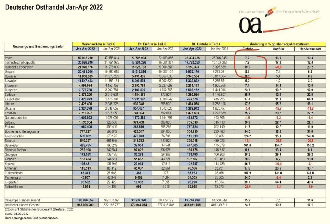 – Посол Украины в ФРГ Мельник: В январе-апреле Германия увеличила импорт из РФ на 60%, перечислив Москве почти €6 млрд. За это же время Германия сократила товарооборот с Украиной на 11% – https://t.me/astrey/13206