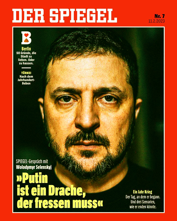 – Немецкий журнал Der Spiegel вышел 11 февраля с фото Зеленского на обложке и его словами: «Путин – это дракон, который всё время должен всё пожирать. Интервью было взято две недели назад в Киеве. Зеленский: Путина невозможно уговорить и остановить. «Чтобы удовлетворить его аппетит, вы даёте ему одну страну за другой, а народ ваш кричит: 'Дайте ему еще!' Ни границы, ни океаны его не остановят» – https://t.me/uniannet/89339