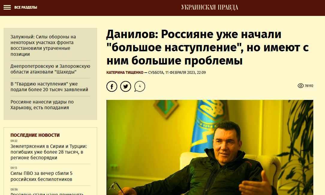 – Секретарь СНБО Данилов в статье для «Украинской правды»: «Россия – это не только проблема Украины, это проблема, которая расползлась как гангрена и угрожает всему миру. Россия не должна сохраниться в тех пределах и в том состоянии, в котором она сейчас существует. Она должна быть трансформирована, чтобы навсегда исчез риск возрождения российских хватательных инстинктов» – https://t.me/u_now/85811