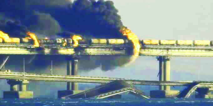 – Newsweek: За взрывом Крымского моста мог стоять американский дрон – «мост могли взорвать снизу. На обрушившуюся секцию очевидно действовала взрывная волна снизу. Это может быть результатом работы воздушного или водного дрона» – https://t.me/u_now/71219