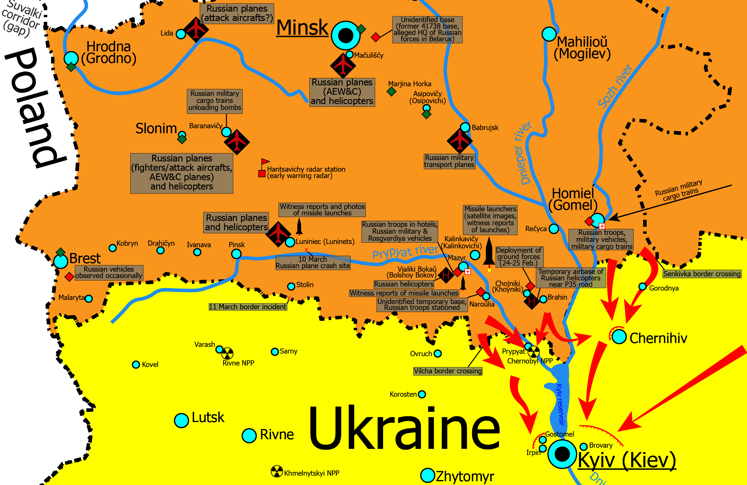 – Основатель проекта Gulagu.net Владимир Осечкин: «Россия готовит план вторжения со стороны Беларуси… Они приготовили огромное количество заключенных, это как раз для того, чтобы они шли напрямую, пробивая собой дыру в этой карте минных полей, расчищая дорогу для техники… Если они действительно пойдут в нахрап, если такой вал людей пойдёт на мины, это будет самое кровавое побоище за всю историю XXI века» – https://t.me/eshkinkrot/37454