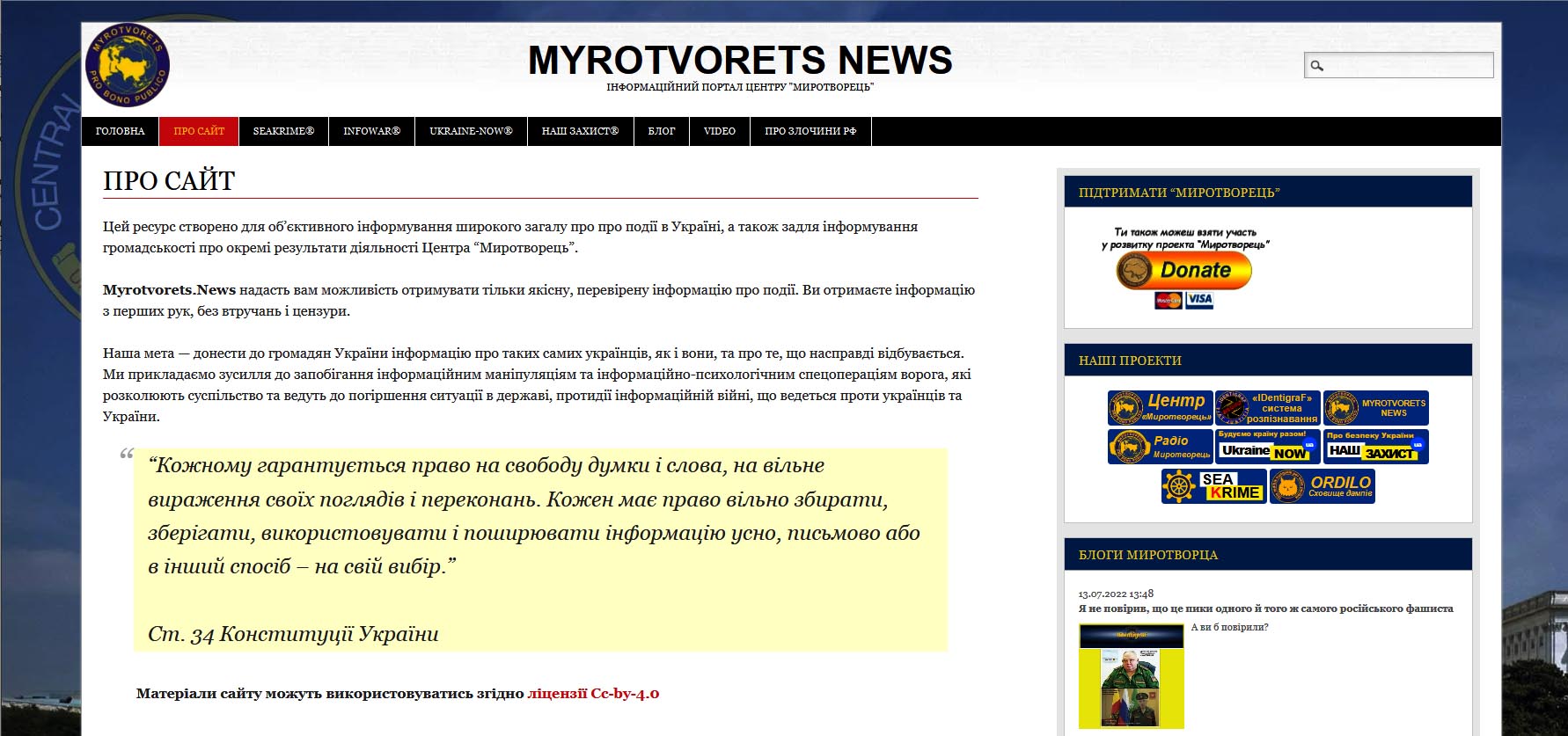– Из письма РФ генсеку ООН: «Мы просим вас сделать необходимые шаги, чтобы обратить внимание украинских властей на преступную деятельность проекта «Миротворец» и заставить их закрыть его». «Миротворец» – это организация, базирующаяся в США, которая публикует информацию о врагах Украины – https://t.me/voynareal/28673