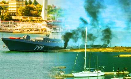 – Атака плавающих беспилотников в бухте Севастополя. Минобороны РФ сообщило сначала, что получил повреждение тральщик «Иван Голубец». В реальности были повреждены или потоплены три военных корабля, включая флагман Черноморского флота – https://t.me/eshkinkrot/36571?single