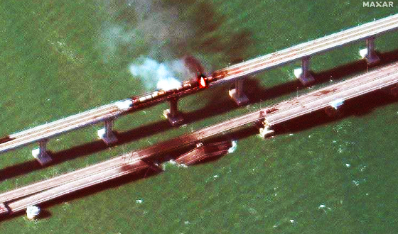 – На Крымском мосту взорвался грузовик, повредив автомобильное дорожное полотно и загорелся поезд, который перевозил в цистернах горючие материалы – на соседнем ж/д полотне. Обрушились два пролёта автодороги – https://t.me/u_now/70069, https://t.me/novaya_europe/7089, https://t.me/novaya_europe/7083 и https://t.me/uniannet/75109