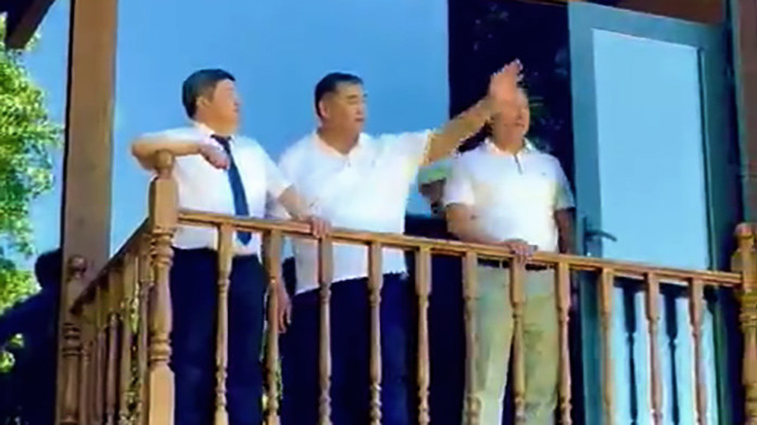Глава Кабинета министров Акылбек Жапаров и его заместитель, глава ГКНБ Камчыбек Ташиев восхищаются красотой Арстанбапа.