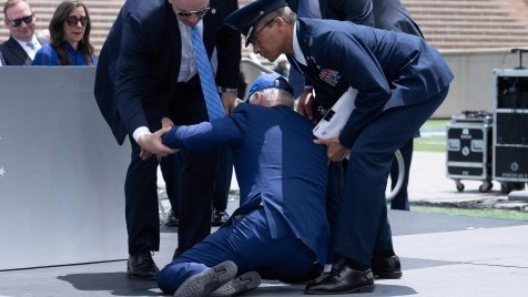Президент США Джо Байден упал на сцене во время церемонии вручения дипломов в Академии Военно-воздушных сил (ВВС) страны. Как сообщает Reuters, американскому лидеру быстро помогла подняться его охрана.