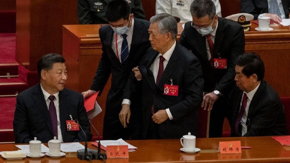 Действующий глава государства наблюдал за происходящем молча. Причины, по которым Ху Цзиньтао покинул заседание, не сообщаются. Во время заседания он сидел по левую руку от председателя КНР Си Цзиньпина. Ху Цзиньтао 79 лет. Он занимал пост генсекретаря ЦК Компартии Китая с 2002 по 2012 год, пост председателя КНР — с 2003 по 2013 год. На обеих должностях его сменил Си.