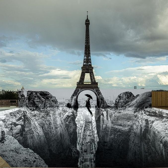 Французский художник под псевдонимом JR создал эффектную оптическую иллюзию — он перенес Эйфелеву башню прямо на скалы.