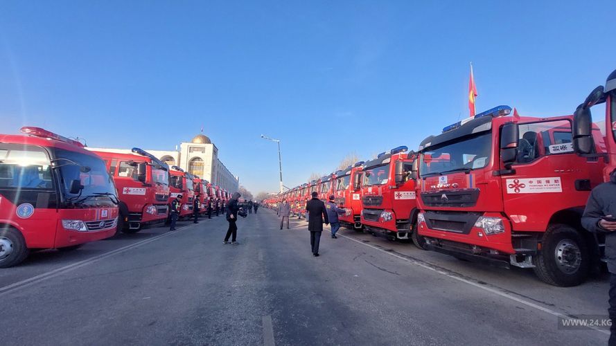Президент Садыр Жапаров передал двум министерствам и мэрии Бишкека автобусы, машины скорой помощи и пожарной службы. Министерство чрезвычайных ситуаций получило от Китая безвозмездно 100 единиц специальной современной противопожарной техники.