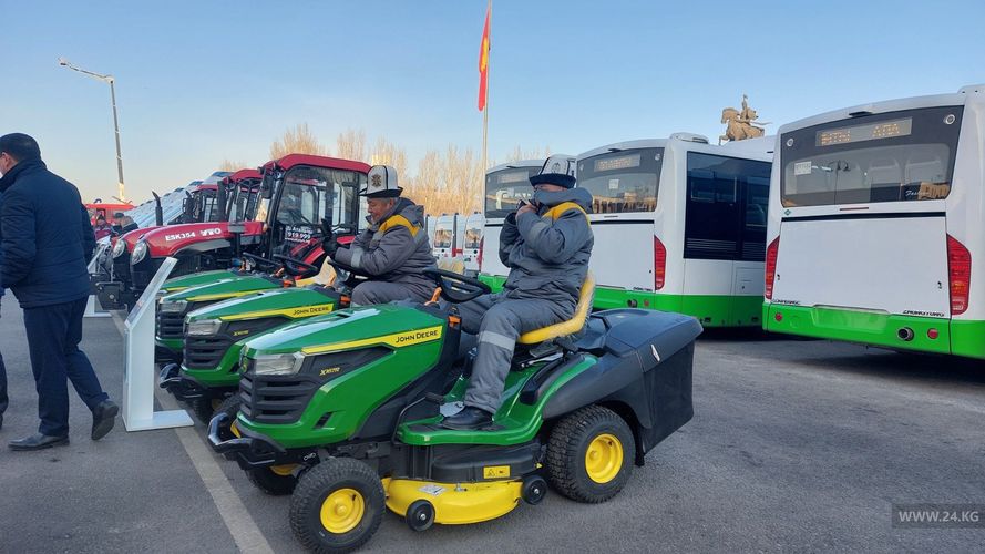 В церемонии передачи техники участвовала и мэрия Бишкека. Она представила 120 автобусов, которые ранее закупила у китайской компании за счет городского бюджета за 1 миллиард сомов.