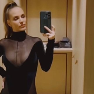 «Это я», — подписала видео исполнительница. На кадрах запечатлено, как артистка позирует перед зеркалом: на ней черное трико с прозрачными элементами и босоножки на высоких каблуках.