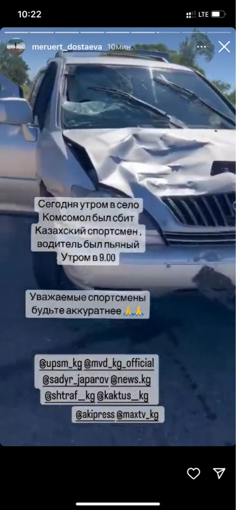 На Иссык-Куле насмерть сбили 58-летнего велосипедиста из Казахстана. В Сети появилось видео. Как рассказали в УВД, авария произошла сегодня в 07:40. По информации милиции, 41-водитель Lexus RX 330 на трассе Балыкчи — Ананьево — Каракол в селе Комсомол столкнулся с машиной Nissan Micra (боковое столкновение) и после сбил велосипедиста. Житель Алматы скончался на месте происшествия. Назначены экспертизы, водителей проверят, находились ли они в трезвом состоянии.
