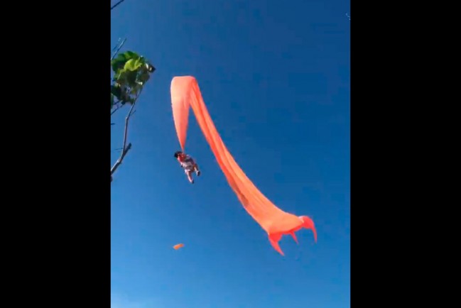 Родители не заметили, как девочка ухватилась за верёвку змея, а тот поднял её в небо на 10-метровую высоту. Несколько секунд ребёнок раскачивался в воздухе на глазах потрясённой толпы, а потом упал на землю.