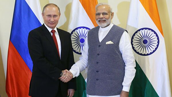 Перед началом встречи Путин поблагодарив Моди за приглашение, отметил: "Мы относимся к Индии как к великой державе со дружественным нам народом и замечательной предысторией наших отношений".