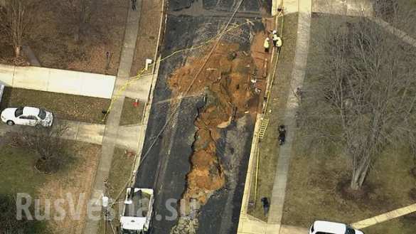 На улице города Фэрфакса в штате Виргиния произошел массивный обвал дороги, свидетельствуют кадры ABC News.