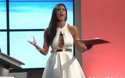 На видео одна из самых сексуальных телеведущих Италии случайным образом соблазнила зрителя не красивой грудью, а более интимной частью тела. Перед взором зрителей на миг показалось нижнее белье красотки.