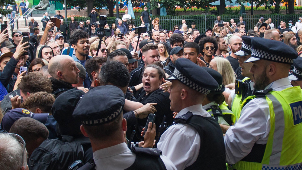 В центре Лондона в ходе акции протеста против вакцинации произошли беспорядки, как минимум четыре сотрудника полиции получили травмы, передает в пятницу канал Sky News.