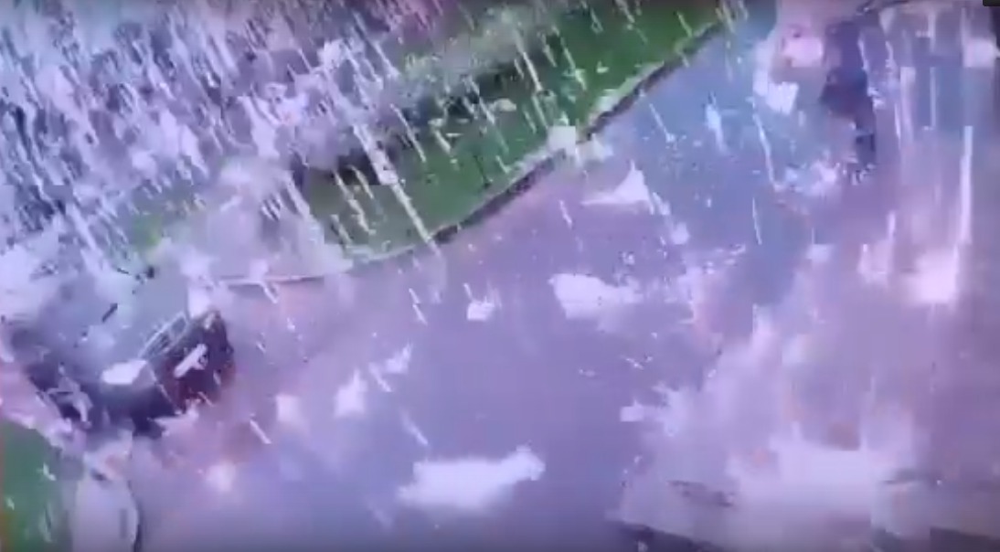 В Санкт-Петербурге 20 мая пошел "огненный дождь" — впечатляющие кадры попали на камеру видеонаблюдения на юго-западе города.