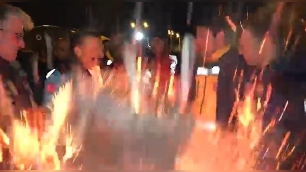 Пламя вспыхнуло рядом с главой Минздрава Турции Фахреттином Коджа, когда он разговаривал с медиками в зоне землетрясения, сообщает Ahaber.