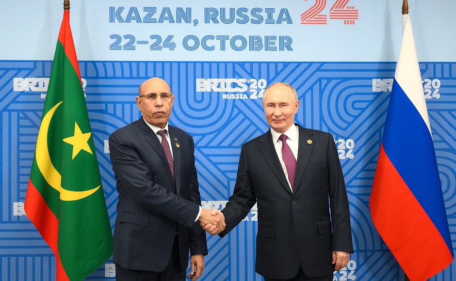 В Казани на полях саммита БРИКС состоялась встреча Владимира Путина с Президентом Исламской Республики Мавритании Мохамедом Ульд Шейхом Эль-Газуани.