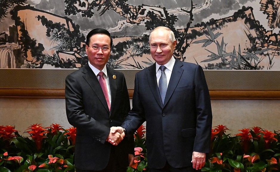 В Пекине Владимир Путин встретился с Президентом Социалистической Республики Вьетнам Во Ван Тхыонгом. Президент России прибыл в Китайскую Народную Республику с рабочим визитом для участия в III Международном форуме «Один пояс, один путь».