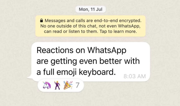 Это произошло через несколько месяцев после того, как у пользователей WhatsApp появилась возможность оставлять реакции в виде эмодзи, но количество доступных вариантов сейчас сильно ограничено. В настоящее время пользователям приходится выбирать между шестью доступными эмодзи.
