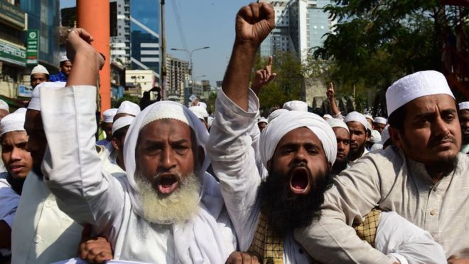 В протестном марше приняли участие преимущественно сторонники консервативного мусульманского движения "Хефазат-и-Ислам". Акция началась после традиционной пятничной молитвы в одной из мечетей города.