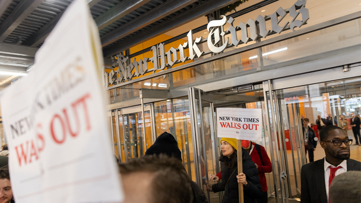 Cвыше тысячи сотрудников издания проводят 24-часовую акцию, требуя повысить зарплаты и вернуть режим удаленной работы — к забастовке присоединились самые именитые журналисты NYT, они призвали читателей на сутки бойкотировать их газету